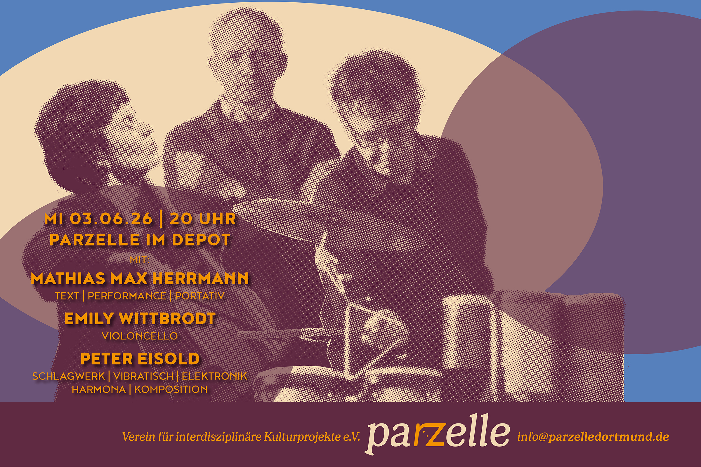 Das bis zu 17-köpfige, interdisziplinäre PART-Ensemble veranstaltet in diesem Jahr allmonatlich verschiedene, „Refugien“ genannte, Konzert-Performances an unterschiedlichsten Orten in NRW. Für das Refugium in der Parzelle im Depot hat sich aus dem PART-Pool das Trio Herrmann/Wittbrodt/Eisold zusammengefunden, um ein einmaliges mikroskopisches Musiktheater aus der Taufe zu heben.